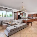 Villa Nikoli med 5 sovrum, som har en terrass med utsikt över bergen, ligger 33 minuters bilresa från flygplatsen Diagoras, Rhodos. Villan med 5 badrum har uteplats, utegrill och trädgård, medan Epta Piges ligger ungefär 3 km bort.